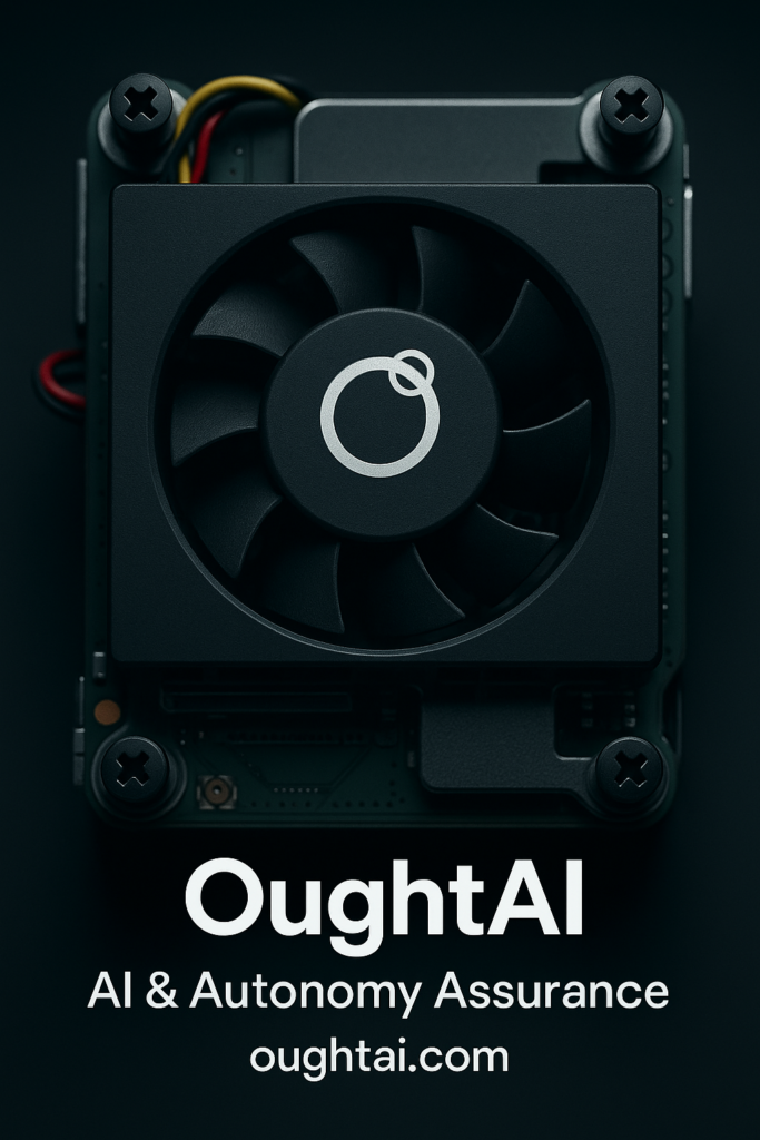 OughtAI secures persistent on-loop human control with autonomy to support mission assurance and survivability. Our solution mitigates unintended consequences and liability whilst maximizing compliance (JSP936). Independent power authority for executing AI STOP, layered and abstracted assurance architecture, no (human or higher order monitor) intervention and electronically isolated actuation paths that cannot be blocked by software.