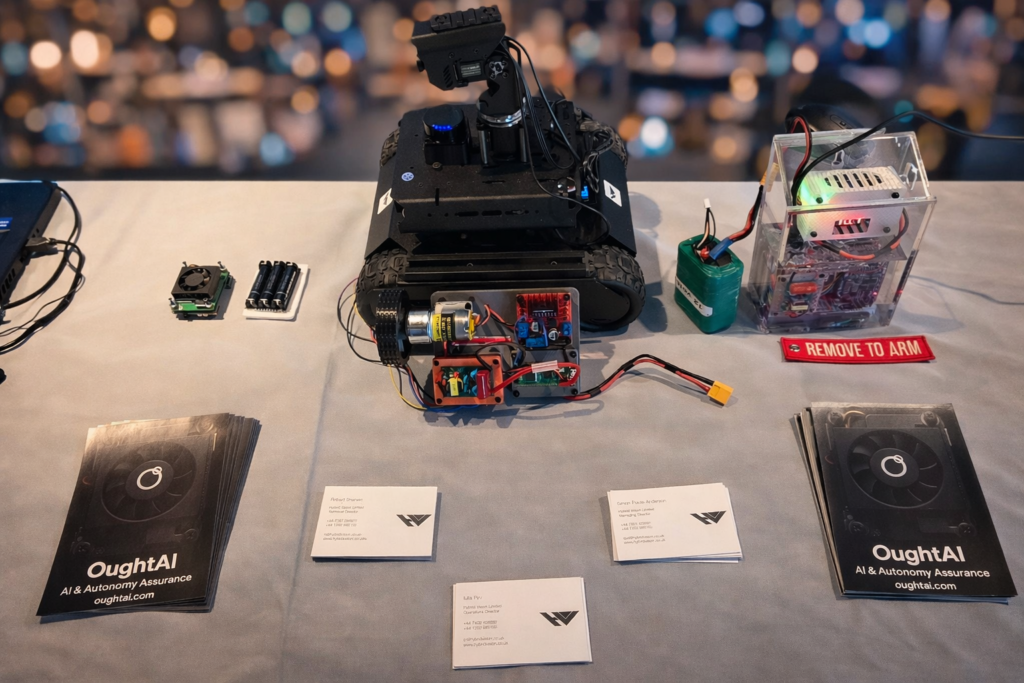 Hybrid Vision delivers unique runtime AI Assurance for robotics and autonomous systems with OughtAI. The solution constitutes hardware and software for agnostic edge platform installation, including UAV, UGV and USV operating in comms-denied and EW environments.